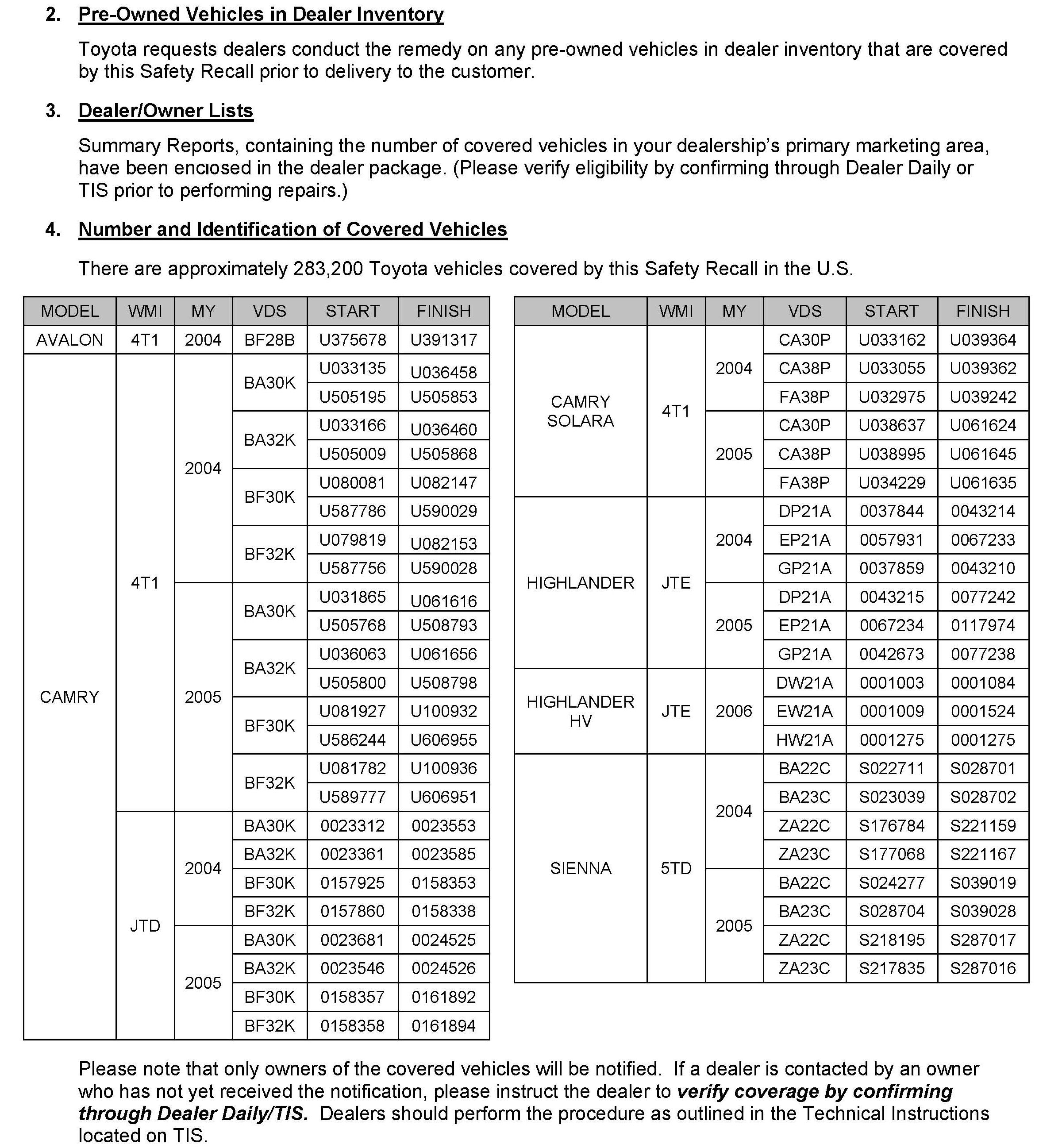Technical Service Bulletins