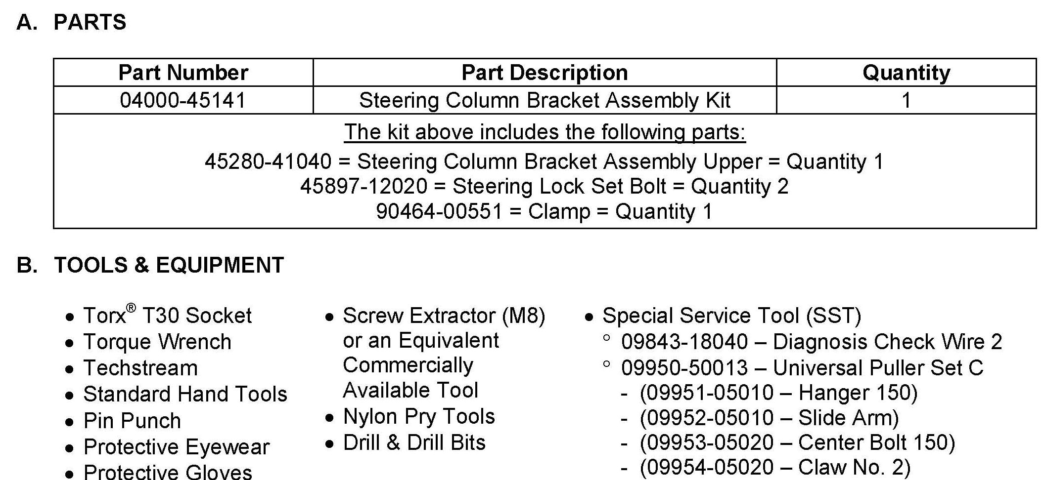 Recall - Steering Column Upper Bracket Replacement