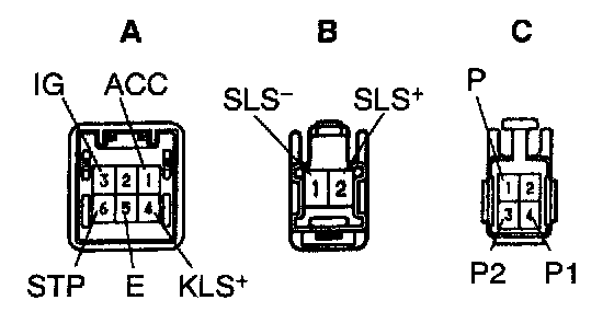 c. Supply battery positive voltage between terminals. Check that an operation noise can be heard from the solenoid.