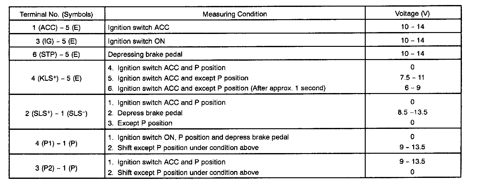 SHIFT LOCK SYSTEM (Column Shift)INSPECTION