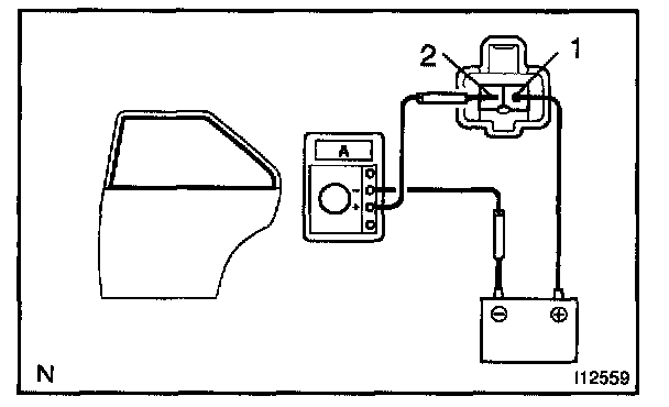 b. Connect the positive (+) lead from the ammeter to terminal 2 on the wire harness side connector and the negative (-) lead to negative terminal of the battery.