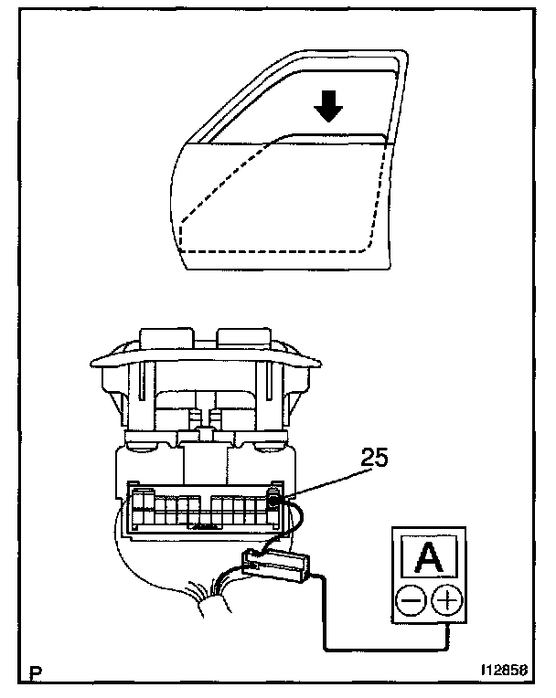 e. Check that the current increases up to approximately 14.5 A or more when the window stops going down.
