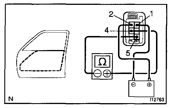 a. Connect the negative (-) lead from the ohmmeter to terminal 5 and the positive (+) lead to terminal 4.