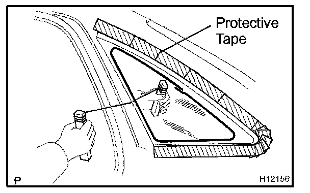 b. Hold the glass in place securely with a protective tape or equivalent until the adhesive hardens.