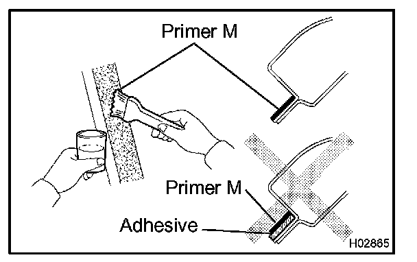 b. When the primer is applied by mistake to the area other than the specified, wipe it off with a clean shop rag before the primer dries.