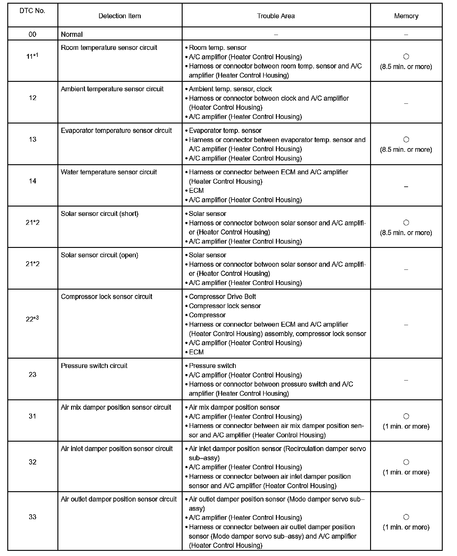 - *3: Compressor lock (DTC 22) is indicated only for a current occurring malfunction.