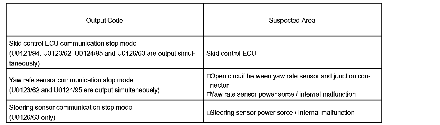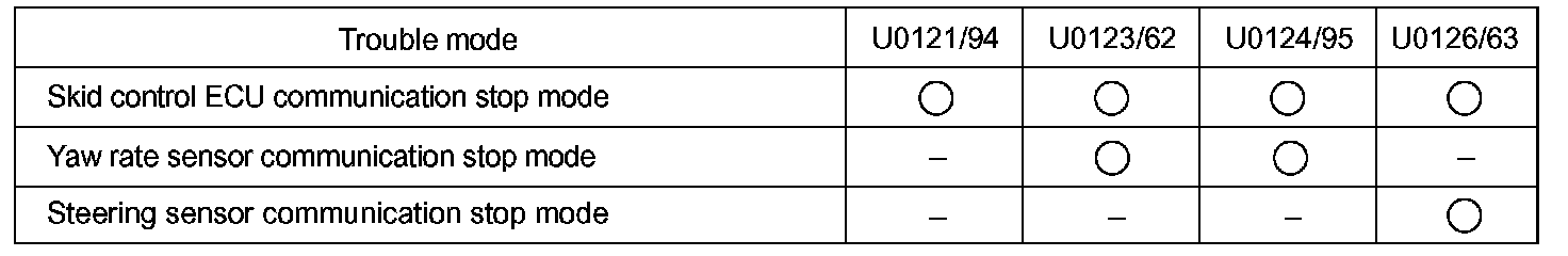 - U0121/94, U0123/62, U0124/95 and U0126/63 are the DTCs in the CAN communication system.