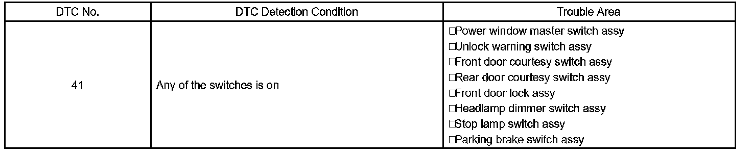 DTC 41 DOOR ECU SWITCH ONCIRCUIT DESCRIPTION