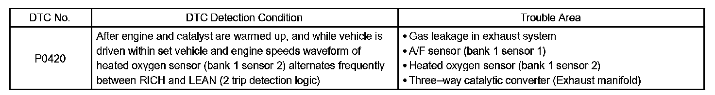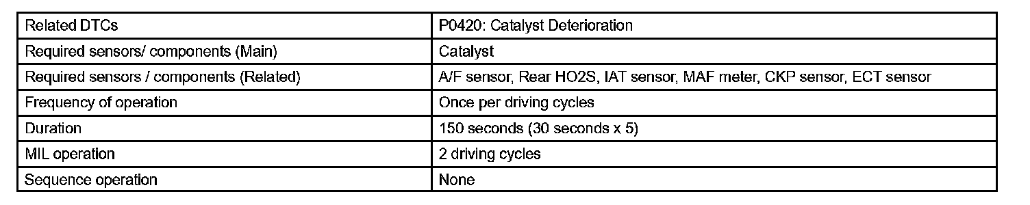 DTC P0420 CATALYST SYSTEM EFFICIENCY BELOW THRESHOLD (BANK 1)MONITOR DESCRIPTION