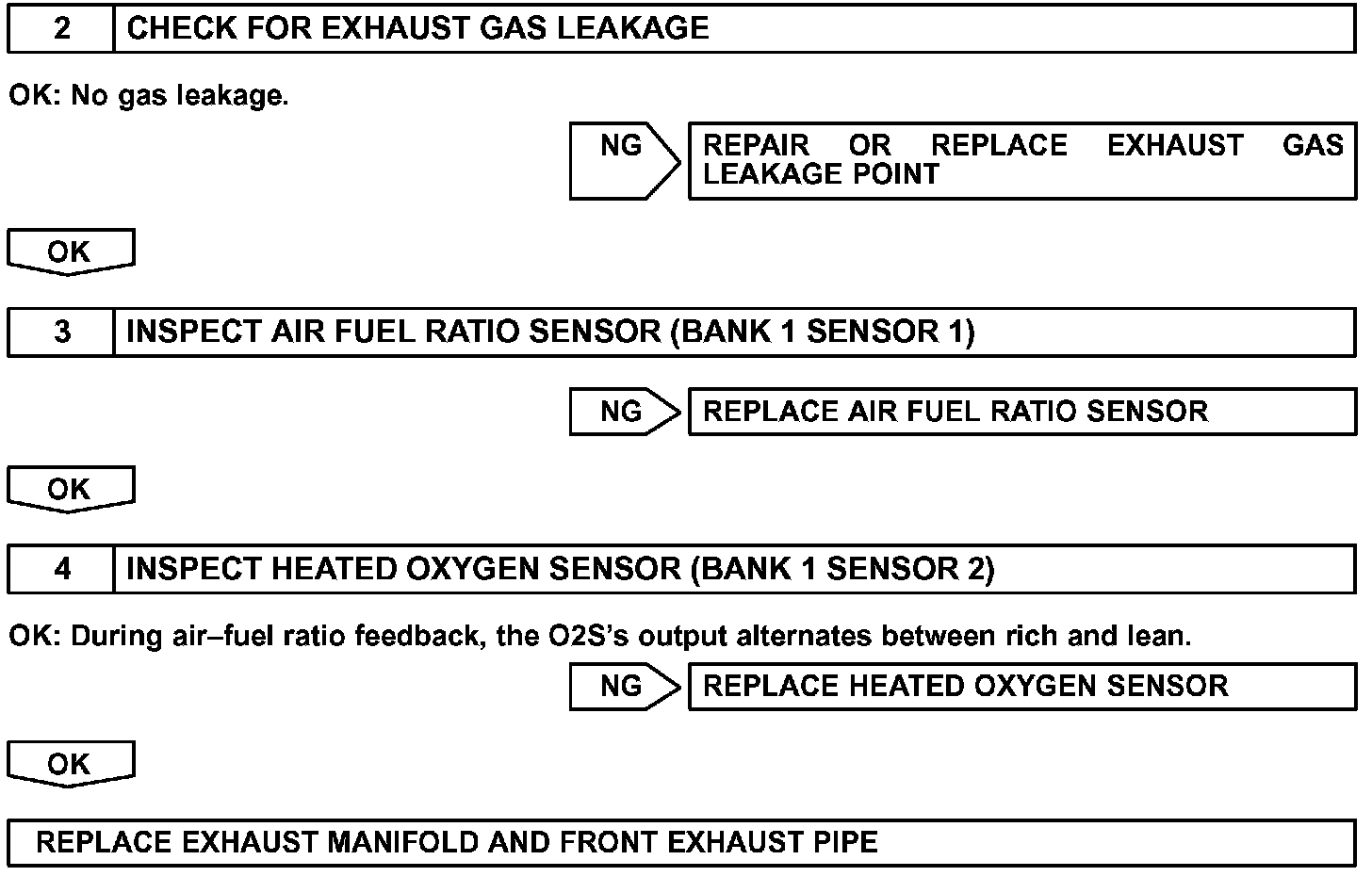 - The following procedure enables the technician to identify a trouble area if malfunction in front A/F sensor or rear heated oxygen sensors other than the catalyst converter, or the malfunction that indicates the actual air fuel ratio extremely RICH or LEAN.
