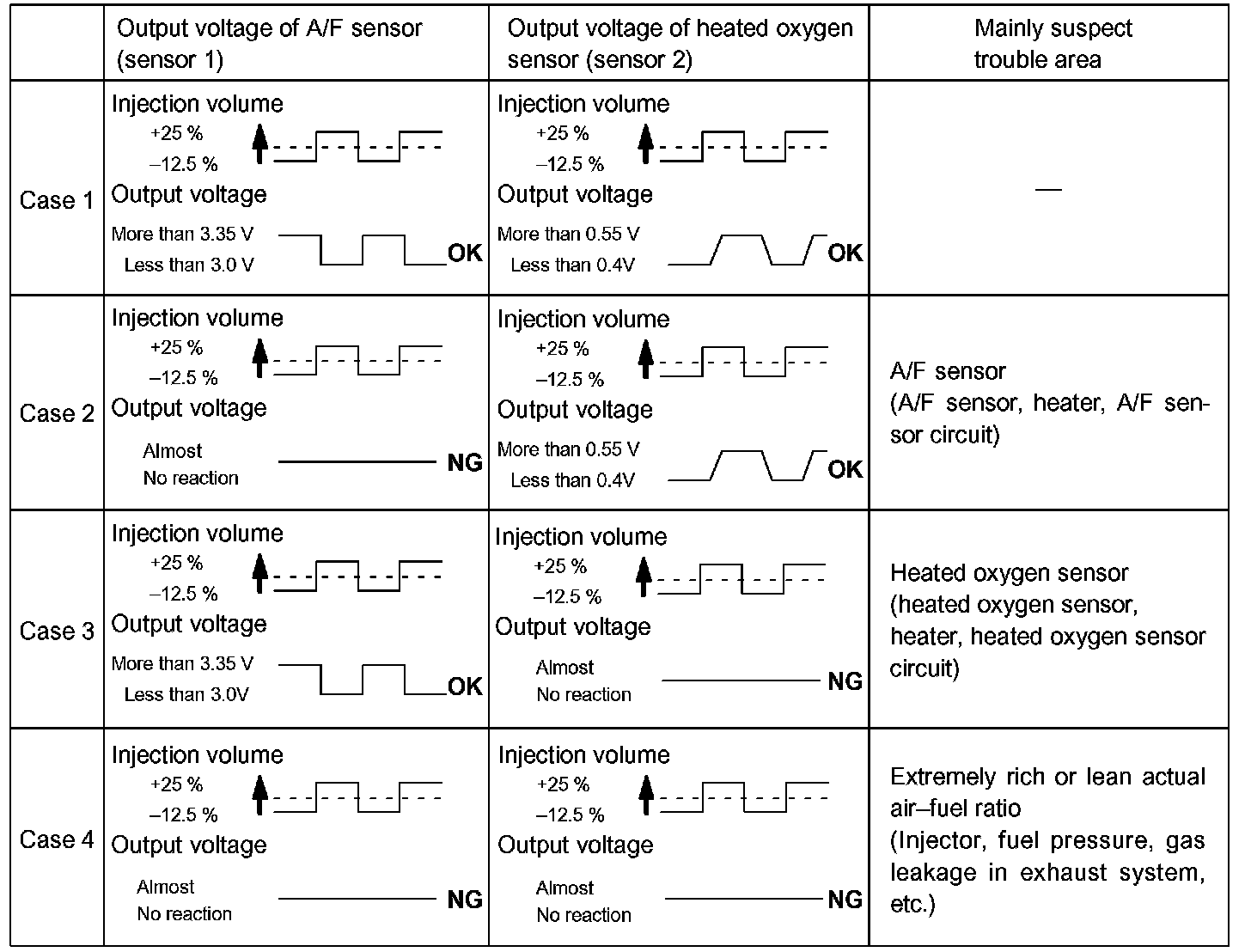HINT: The A/F CONTROL operation lowers the injection volume 12.5 % or increases the injection volume 25 %.