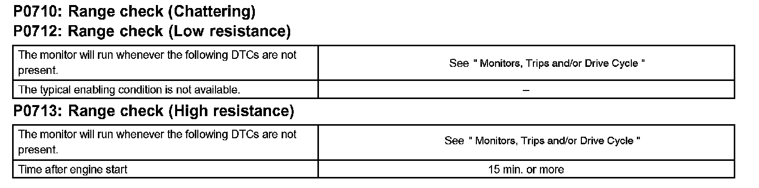 DTC P0713 TRANSMISSION FLUID TEMPERATURE SENSOR "A" CIRCUIT HIGH INPUTCIRCUIT DESCRIPTION
