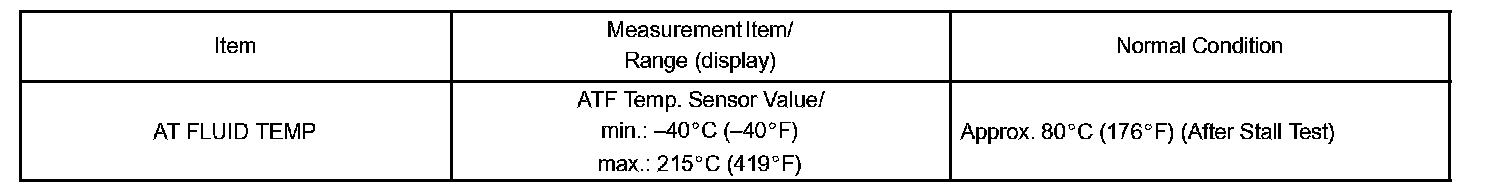 *2: -40 °C (-40 °F) is indicated regardless of the actual ATF temperature.