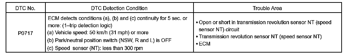 DTC P0717 TURBINE SPEED SENSOR CIRCUIT NO SIGNALCIRCUIT DESCRIPTION