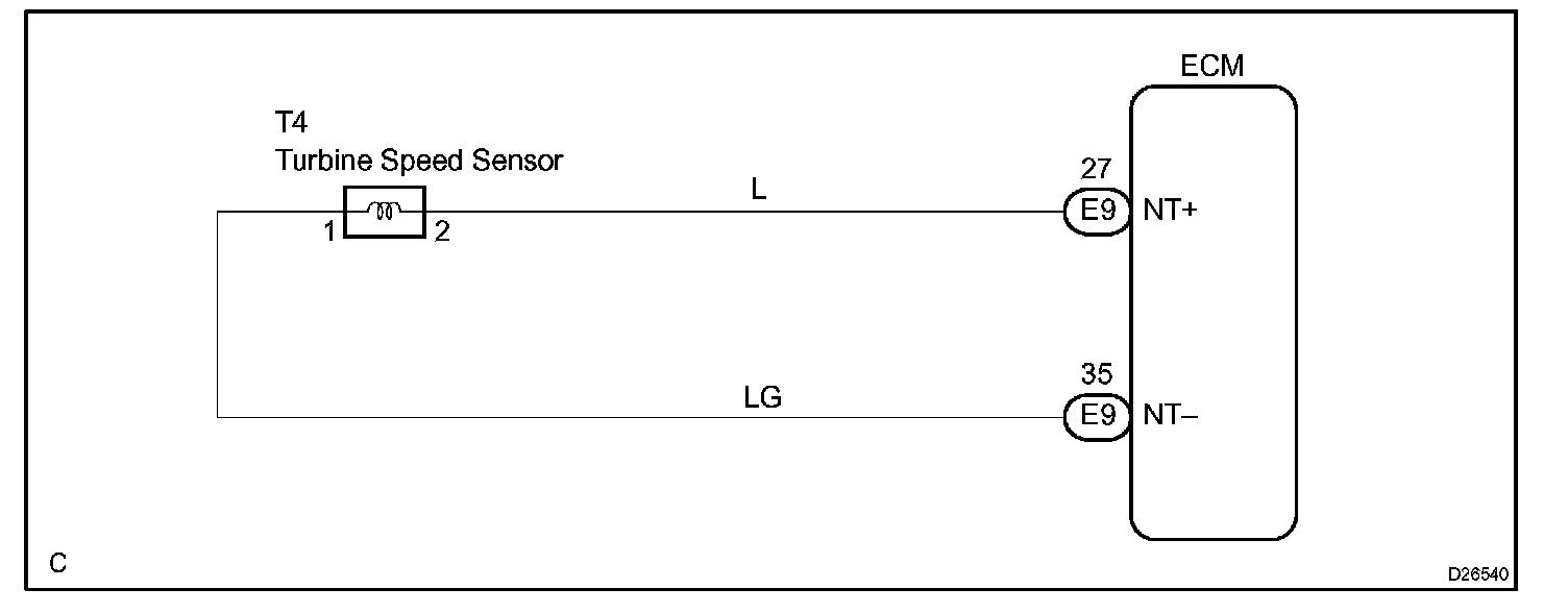 The NT terminal of the ECM detects the revolving signal from speed sensor (NT) (input RPM). The ECM outputs a gearshift signal comparing the speed sensor (NT) with the speed sensor (NC).