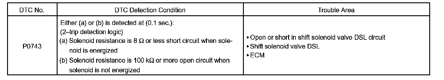 DTC P0743 TORQUE CONVERTER CLUTCH CIRCUIT ELECTRICAL (SHIFT SOLENOID VALVE DSL)CIRCUIT DESCRIPTION
