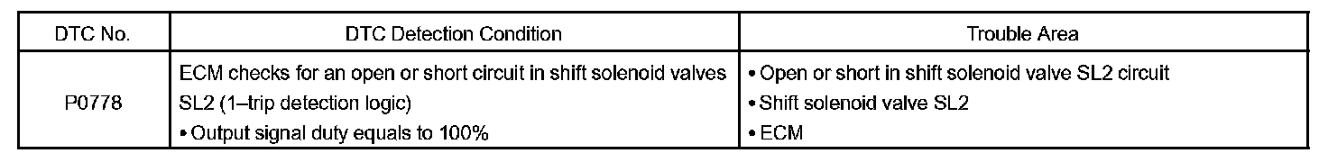 DTC P0778 PRESSURE CONTROL SOLENOID "B" ELECTRICAL (SHIFT SOLENOID VALVE SL2)CIRCUIT DESCRIPTION