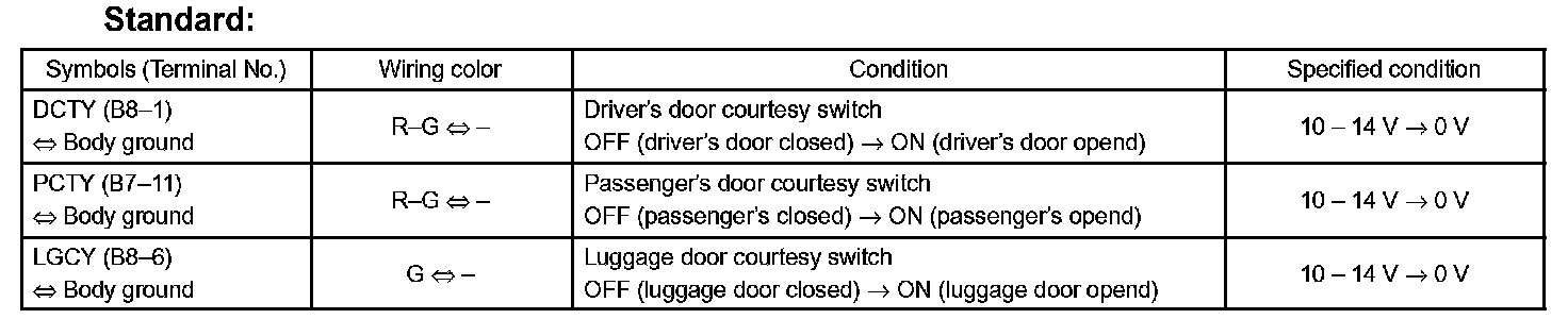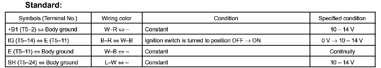 If the result is not as specified, the vehicle may be defective. In this case, check the harness, connector and fuse between the ECU and battery. Then repair or replace it if necessary.