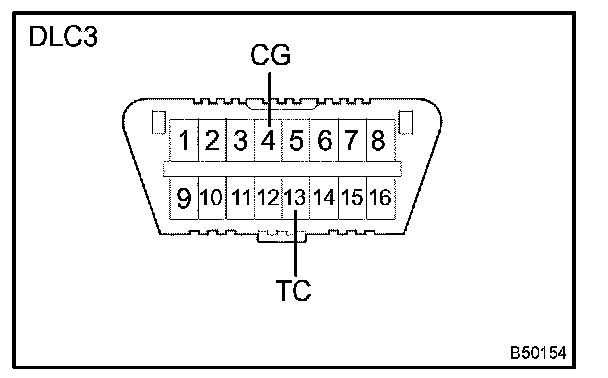 2. By using SST (diagnosis check wire No. 2), make a short-circuit between terminals TC (13) and CG (4) of the DLC3.
