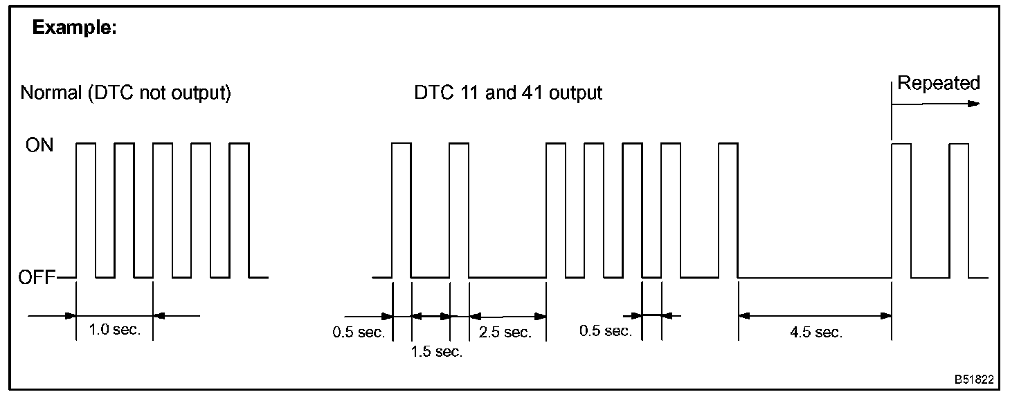 - When no DTC is output even in the normal condition, problems, such as short-circuit between terminals TC and CG, meter fuses defective etc., may exist.