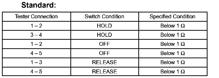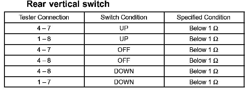 Check the resistance between the terminals when the switch is operated the result is not as specified, replace the switch assembly.