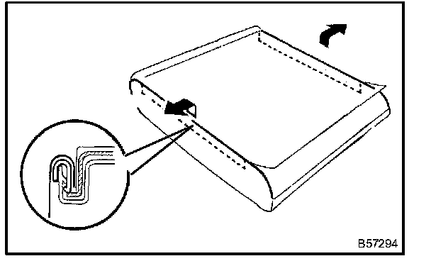 f. Remove the hog rings, and then take away the cover from the rear seatback pad.