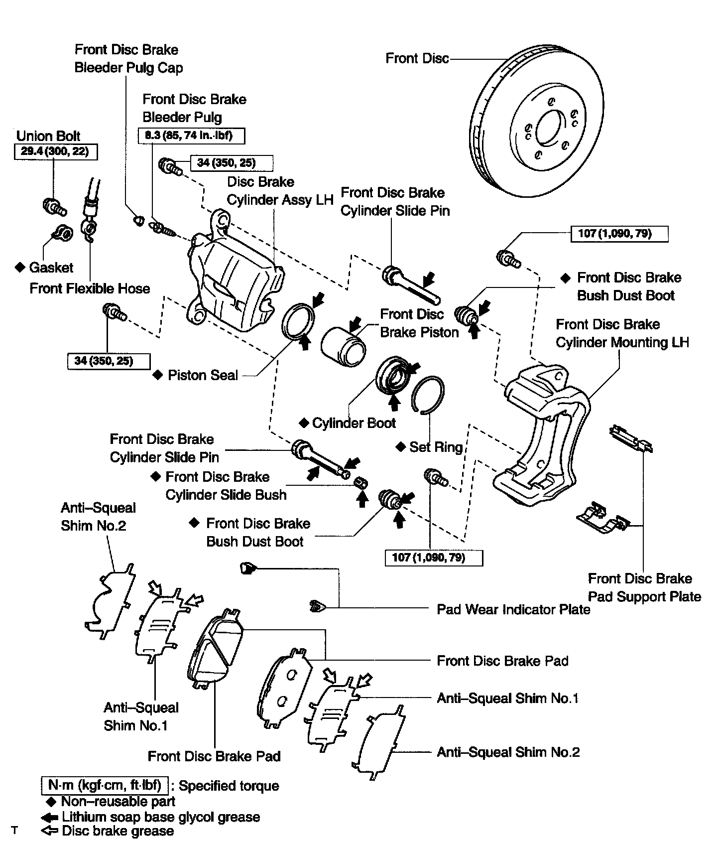 NOTICE: There should be no oil or grease adhering to the friction surfaces of the pads and the disc.