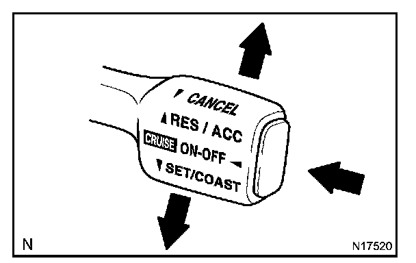 Check the control switch (MAIN, CANCEL, SET/COAST, RES/ACC).