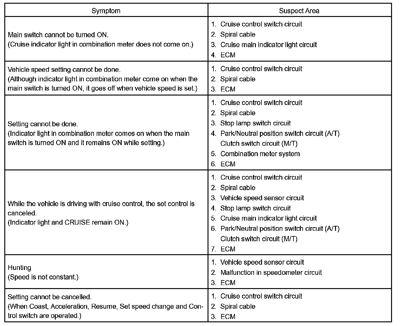 Problem Symptoms Table: