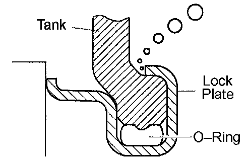 ^ If the sides of the lock plate groove are deformed, reassembly of the tank will be impossible.