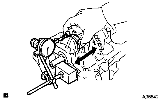 a) Using a dial indicator, measure the thrust clearance while prying the crankshaft back and forth with a screwdriver.
