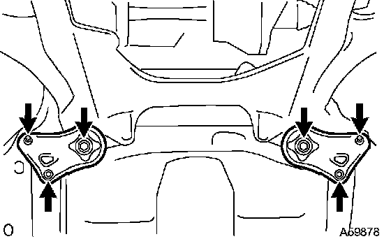 c) Remove the 4 bolts, 2 nuts and front suspension member brace rear RH and LH.