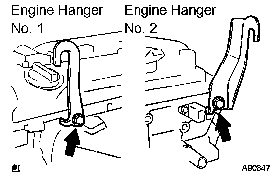 e) Install the 2 engine hangers as shown in the illustration.