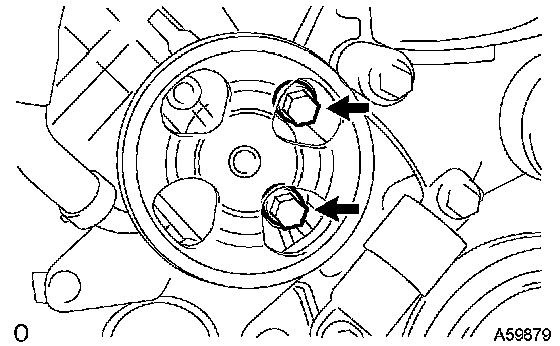 b) Remove the 2 bolts and vane pump from the engine.