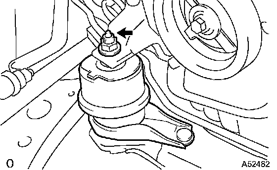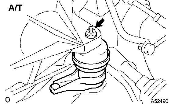 a) A/T: Remove the nut from the engine mounting insulator LH.