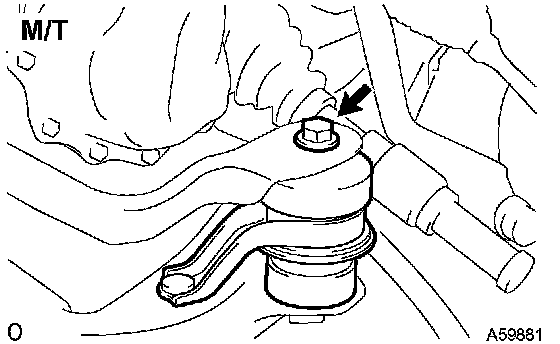 b) M/T: Remove the bolt from the engine mounting insulator LH.