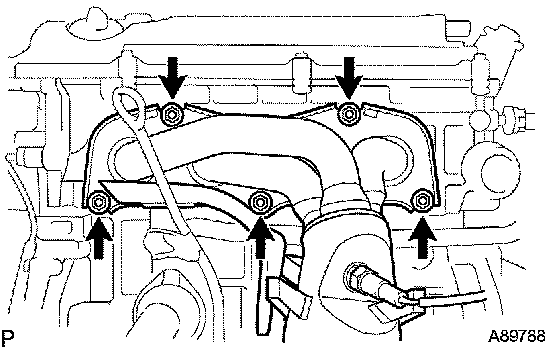 a) Remove the 5 bolts, 2 nuts, intake manifold and gasket.