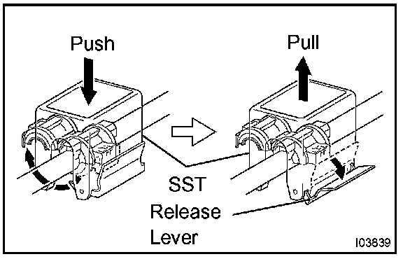 c. Pull SST slightly and push the release lever, then remove the piping clamp with SST.