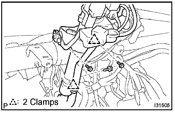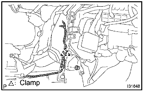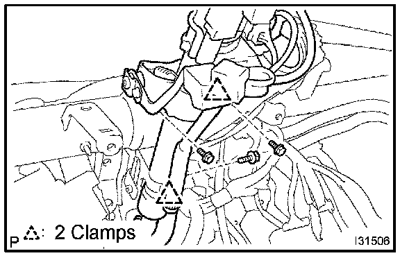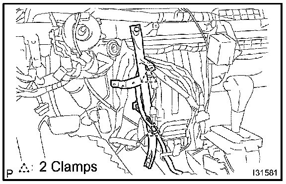 HINT: Confirm the direction of the piping clamp claw and SST using the illustration showing on the caution label.
