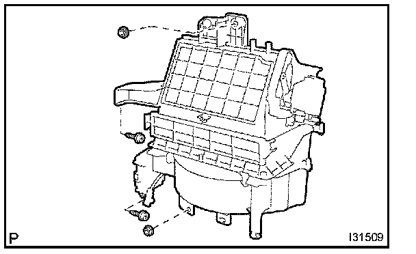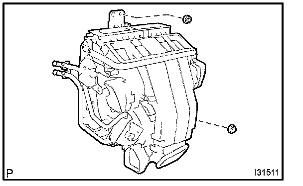 c. Remove the cooler evaporator sub-assembly No.1 from the heater case RH.