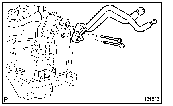 b. Using a hexagon wrench 4 mm (0.16 in.), remove the 2 hexagon bolts and air conditioning tube assembly.