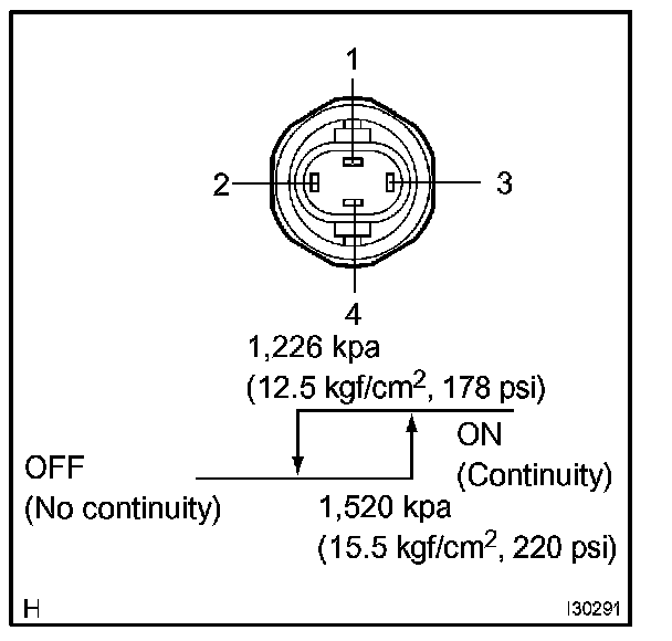 3. Check continuity between terminals when refrigerant pressure is changed, as shown in the illustration.