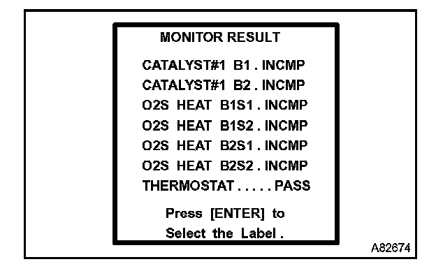 CHECKING MONITOR STATUSHINT: "MONITOR RESULT" indicates normal or malfunction of each component and system when a judgment was made.