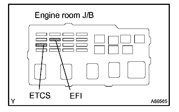 CLEAR DTC (Not using the OBD II scan tool or hand-held tester)a. Remove the EFI and ETCS fuse from the engine room J/B for more than 60 seconds. Or, disconnect the battery terminal for more than 60 seconds.