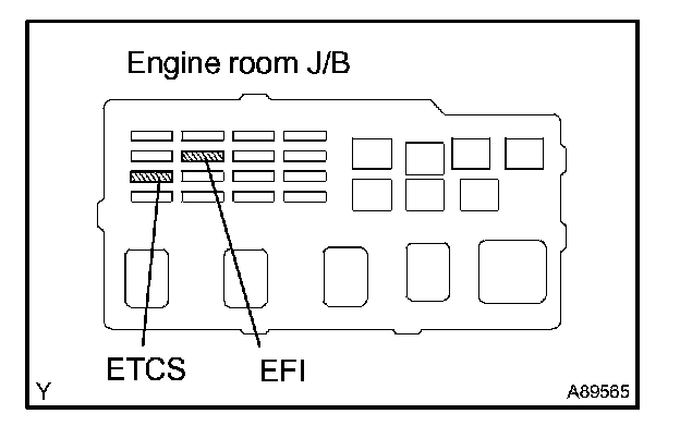 a. Remove the EFI and ETCS fuses from the engine room J/B for more then 60 seconds. Or, disconnect the battery terminal for more than 60 seconds.