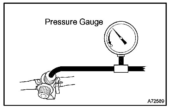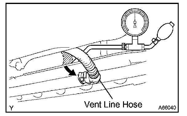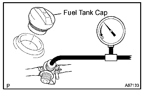 HINT: If the pressure does not decrease when the fuel tank cap is removed, the hose connecting the service port to the fuel tank is blocked.