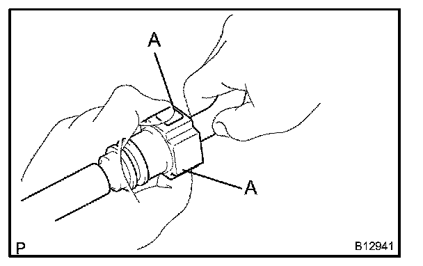 3. Disconnect the connector from the hose while pinching part A with fingers as shown in the illustration.