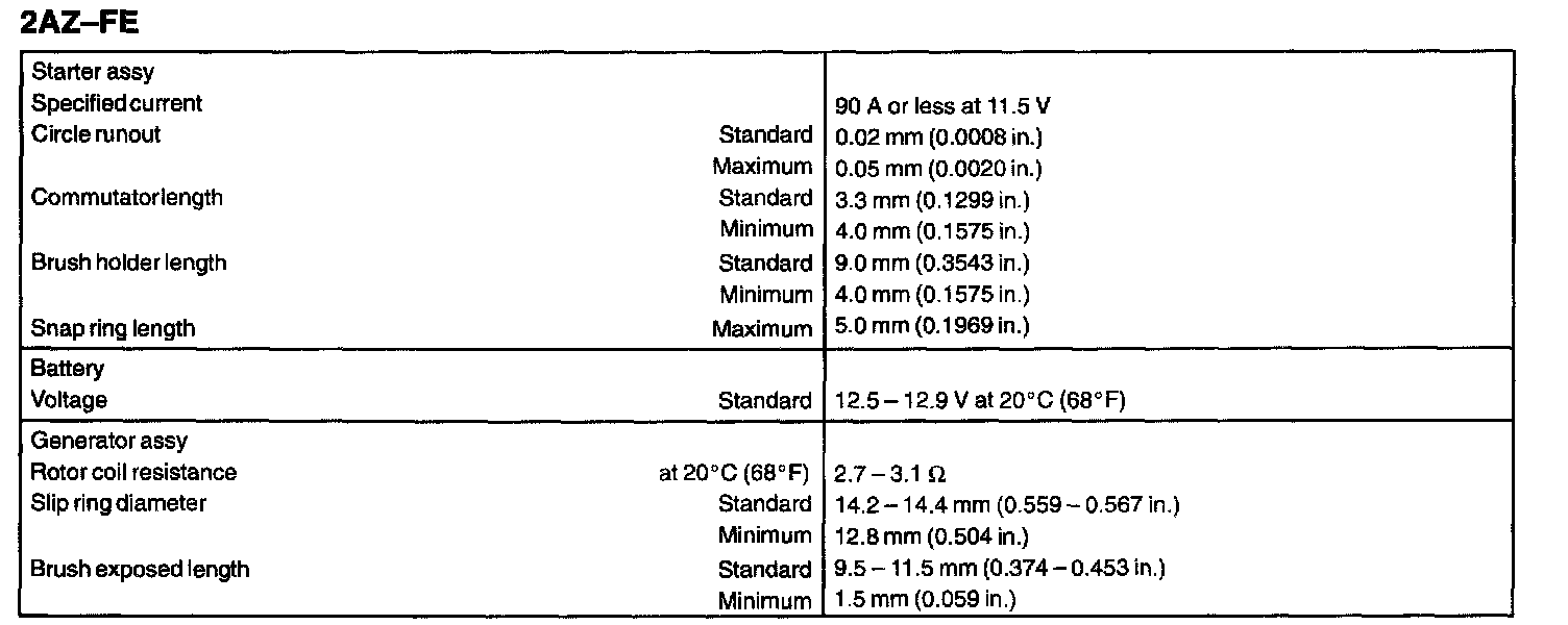 Starting And Charging - Service Data: