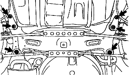 b. Remove the 4 nuts, 2 bolts and 4 retainers from the rear suspension member.