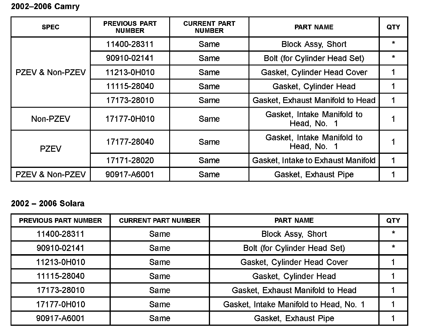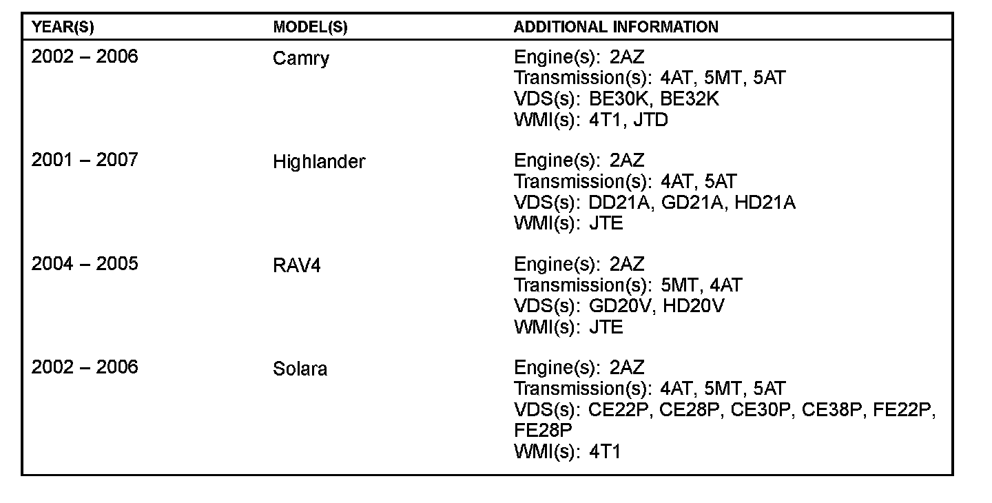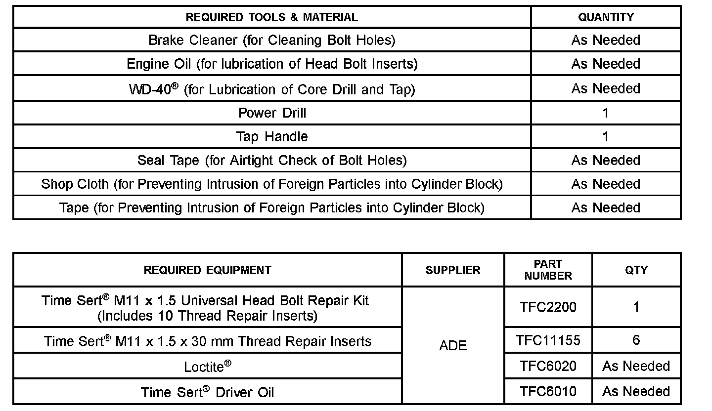 Some vehicles equipped with the 2AZ-FE engine may exhibit damaged cylinder head bolts. Please follow the Repair Procedure to install Time Sert(R) thread repair inserts into the cylinder block.
